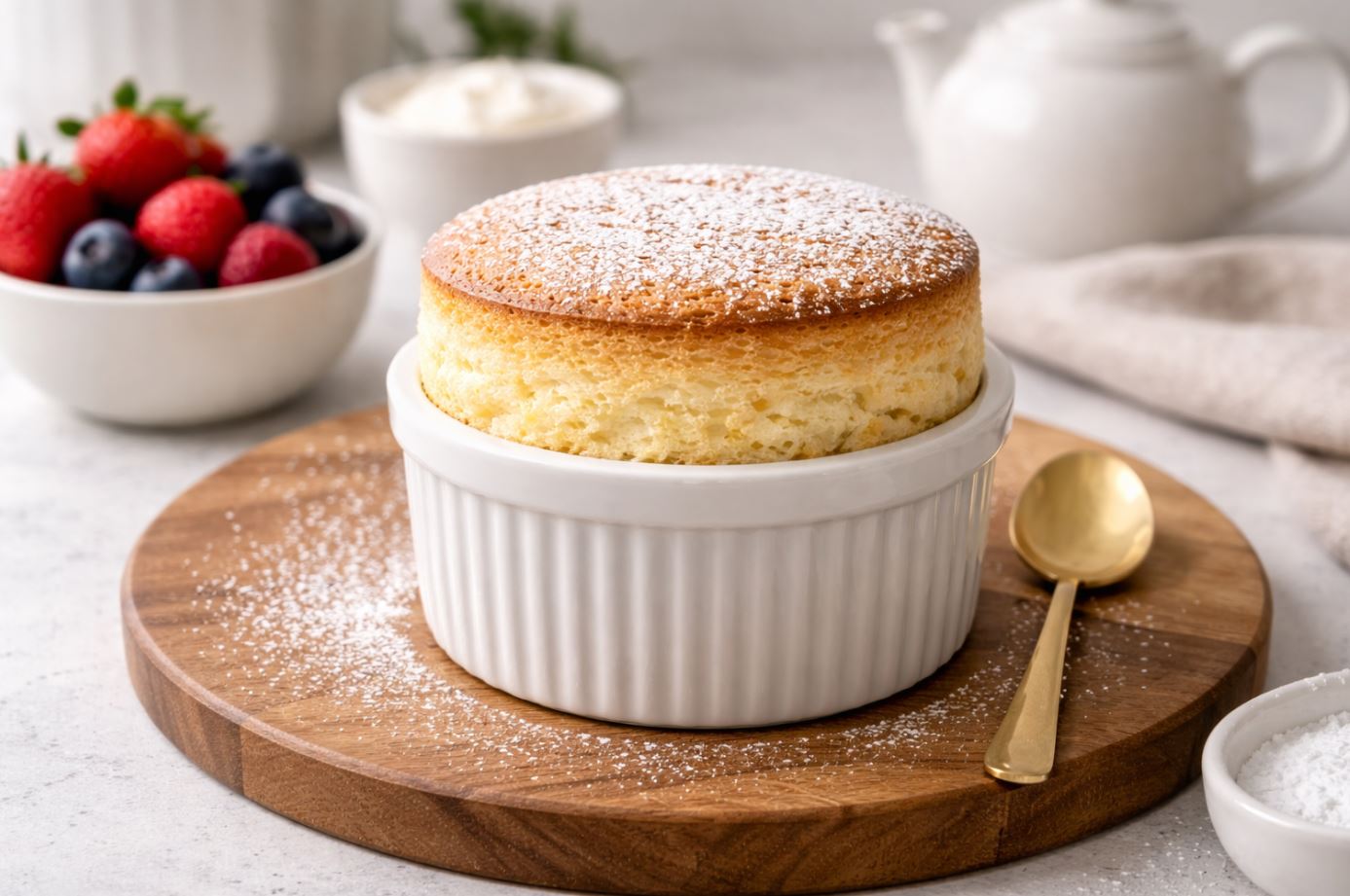 把分蛋乾淨、糖分次加入、打到適中發泡、切拌到剛好、烤到中心定型,你就能做出蓬鬆細緻、入口輕柔又帶濃郁蛋香的舒芙蕾。