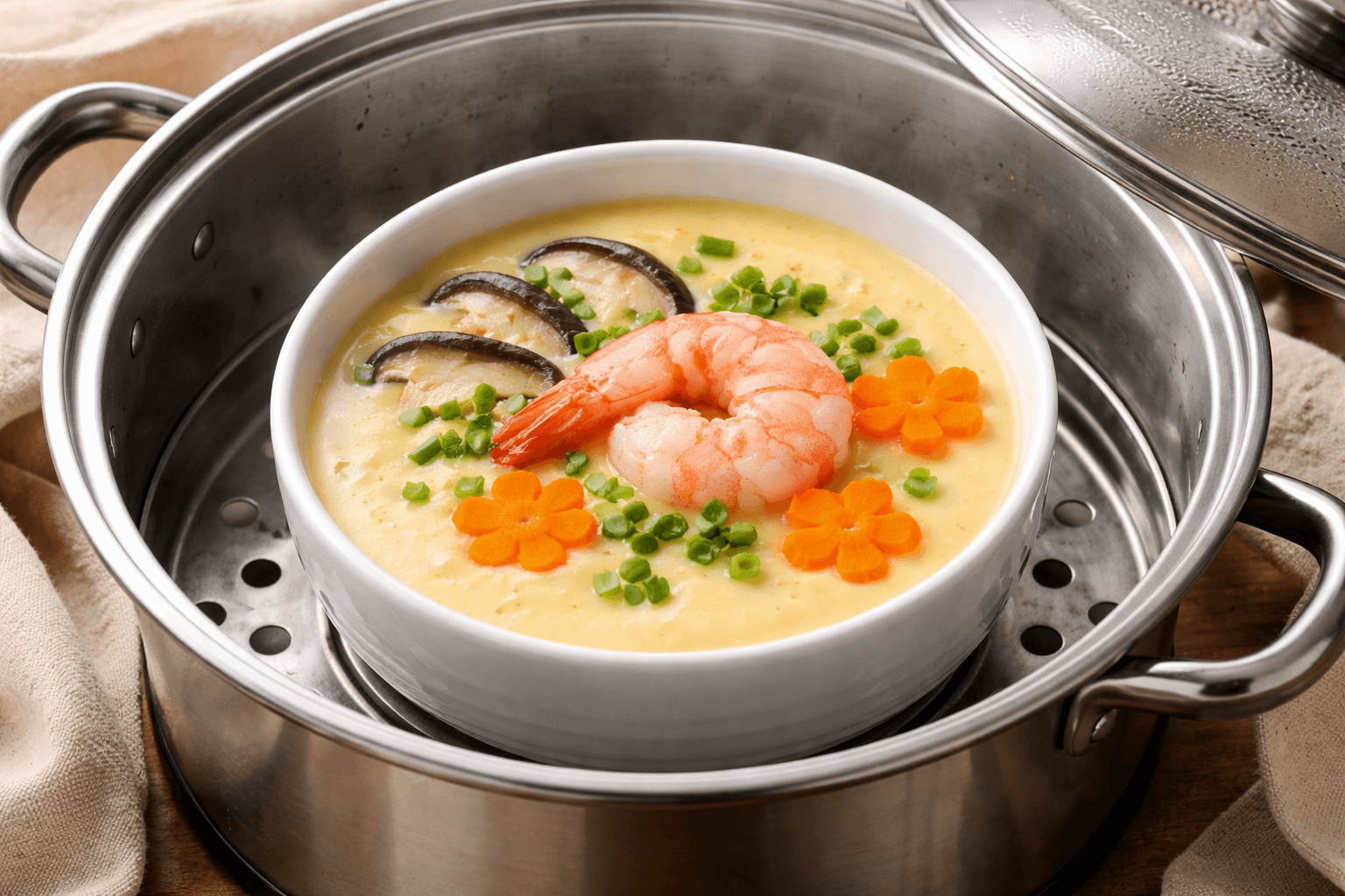 除了原味蒸蛋,也能加入絞肉、蛤蜊、蝦仁、香菇、蔥花或高湯調味,讓料理層次更豐富。